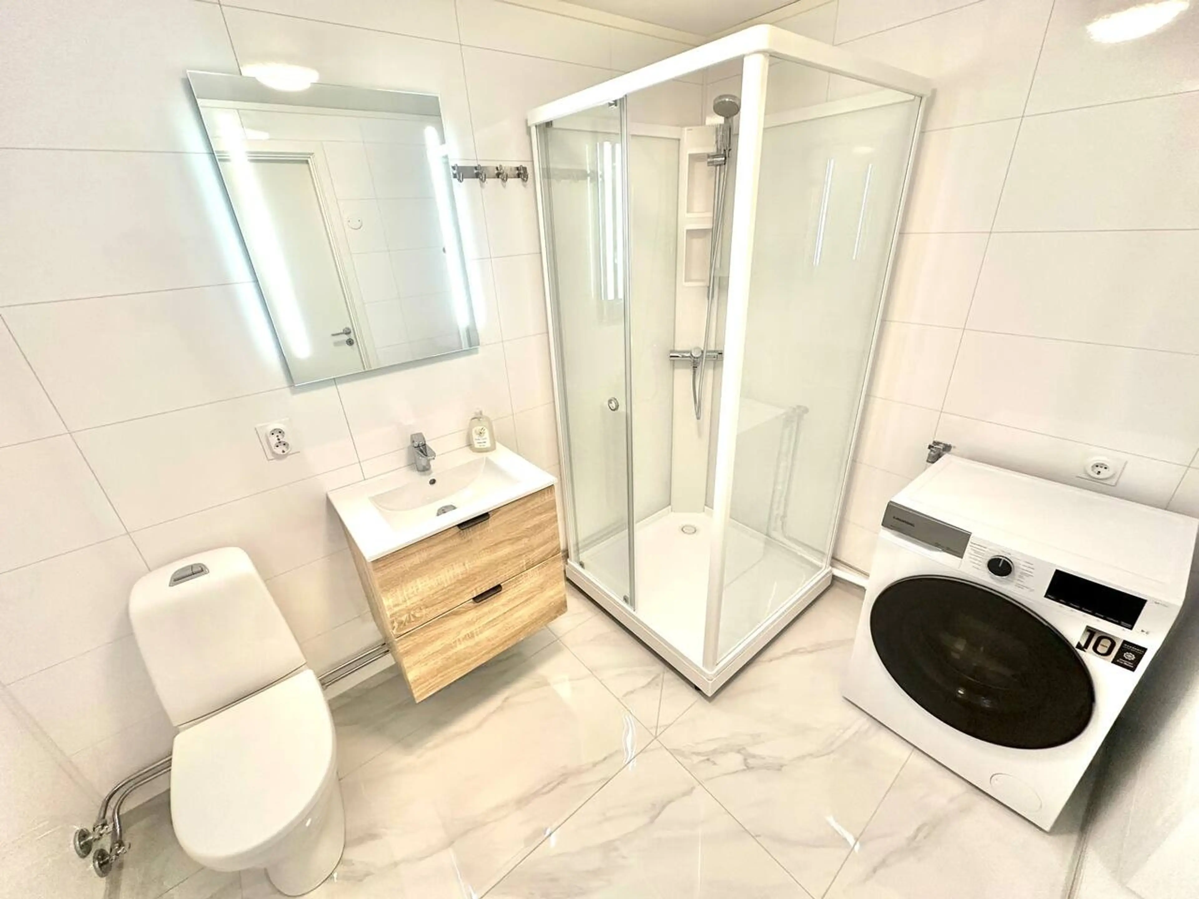 Positive: The apartament was very spacious and brand new. Simple, super clean and well-kept. When we arrived it was nicely warm which was what we needed at that time. Separate bedrooms give privacy. Beds were super comfy and clean. Kitchen fully equipped. 15 minutes driving from the city. Very convenient location.